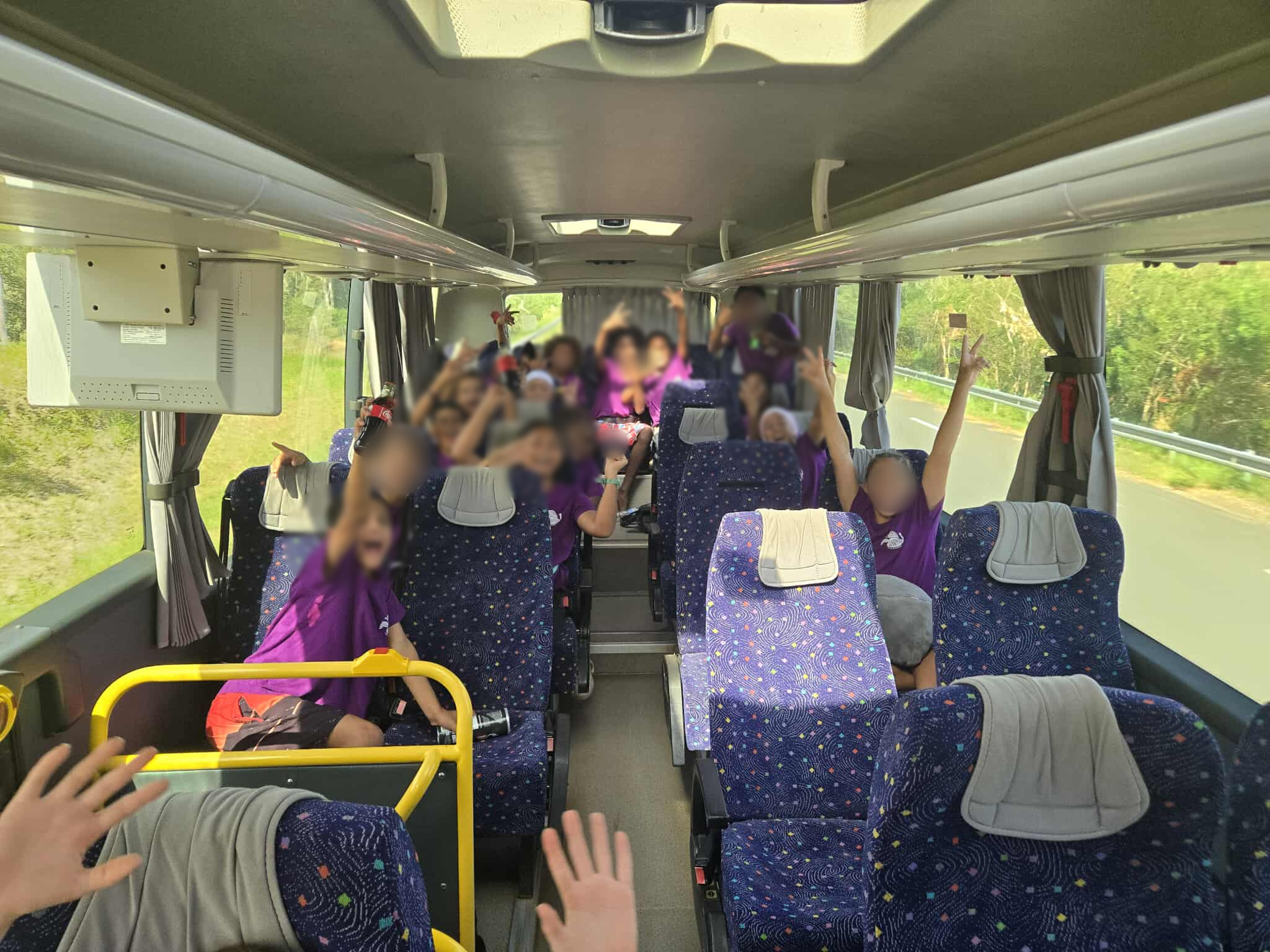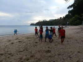 Nous sommes partis vers midi, le bus a fait deux arrêts : un Bourail et un à Moindou. Notre classe est arrivée vers 15h30 à Nouméa. Notre hôtel était le Mocambo. En arrivant à l’hôtel nous nous sommes répartis en groupes de trois et nous nous sommes préparés à aller à la plage. Nous avons marché jusqu’à la Baie des citrons en emportant notre délicieux repas : « un menu Macdonald ». Une fois sur la plage la classe a joué au volley et au foot tout en mangeant notre hamburger. Nous sommes rentrés et nous avons profité un peu de l’hôtel avant de dormir.