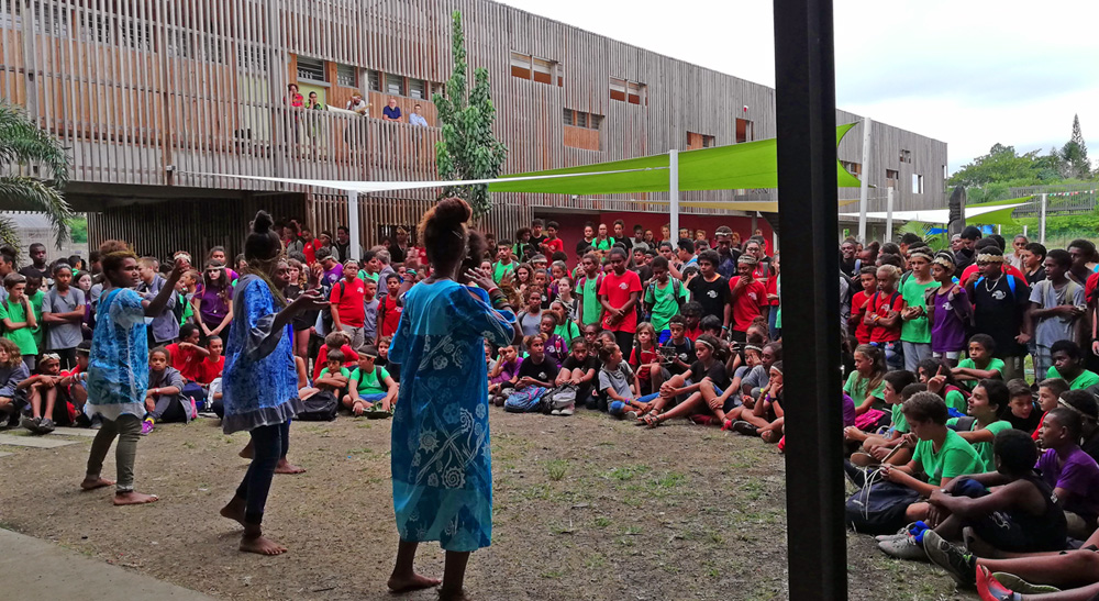 Répartis dans des groupes aux noms des différentes villes du monde, les élèves ont pu découvrir d’autres langues vivantes comme l’Allemand, le Wallisien ou le Norvégien, s’essayer à la calligraphie, toucher des objets d’artisanat, sculpter, tresser, entendre des contes, voir des documentaires, s’essayer aux danses culturelles, lire dans des langues locales, s’interroger sur la question de l’identité... Autant dire que les activités ne manquaient pas ! L’équipe pédagogique habituelle des professeurs a été renforcée pour l’occasion par des associations locales comme le Centre Culturel de Pomémie, l’association des femmes de la Province Nord, l’association Tagadê ou encore la médiathèque de Koné.